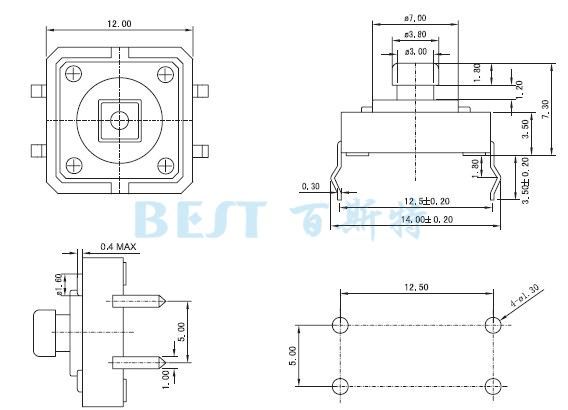 輕觸開關12×12_TS-1103_參考圖紙: