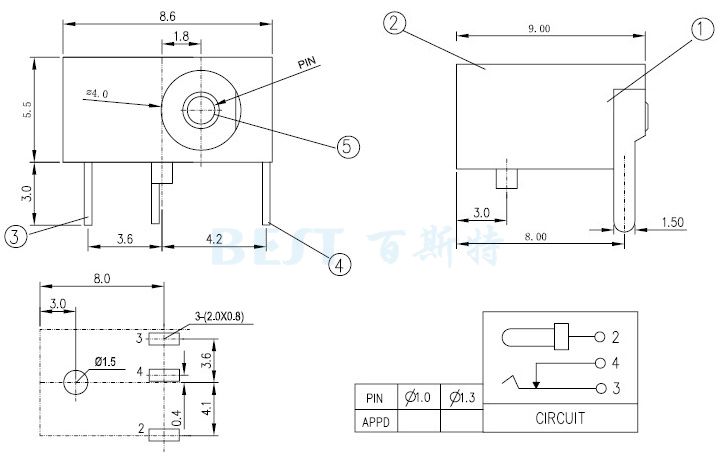 DC電源插座DC-005額定值是DC30V0.5A,插入力度是3到20N,是插件DC電源插座,針芯直徑2.0/2.5,DC插座的孔徑尺寸是6.4mm.3個(gè)插腳。壽命5000次,具體參考DC-005的圖紙說明。